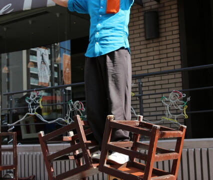 サーカス学校で椅子倒立と出会い椅子倒立を勉強する。